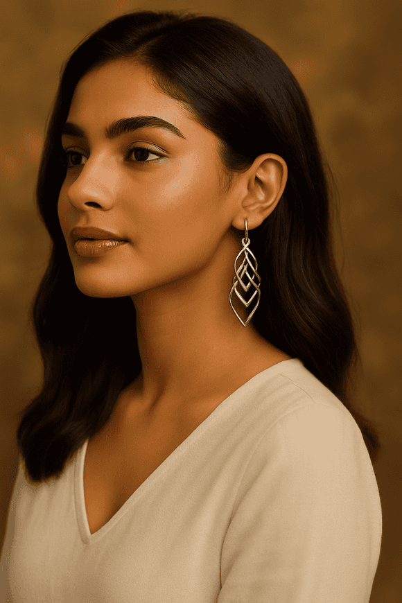 Delicate and dimensional, these sterling silver dangle earrings feature a layered open-leaf design that flows with natural elegance. The overlapping shapes create airy movement and add a refined, feminine finish.